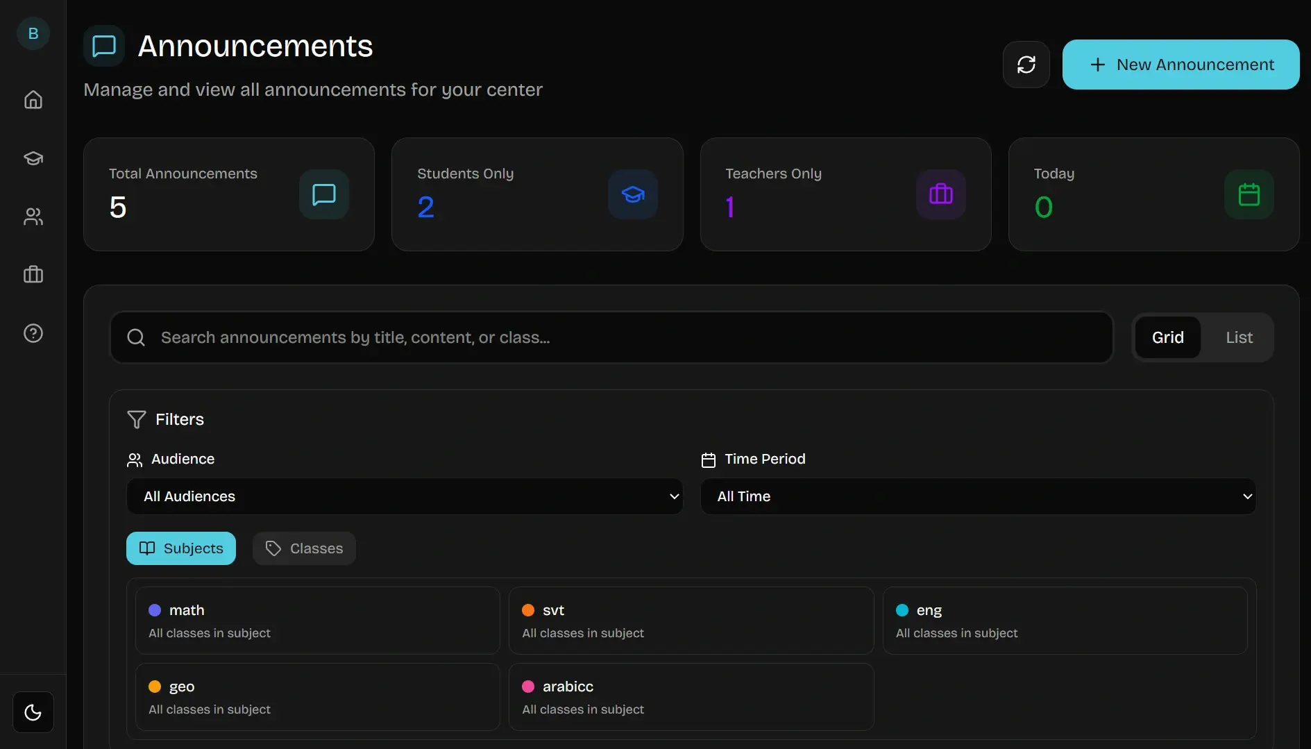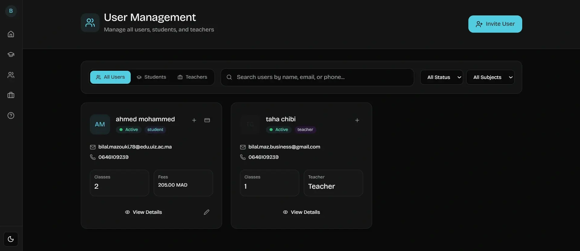 CenterPlus is a cloud-based school management software built specifically for tutoring centers and private schools in Morocco. It centralizes student management, attendance tracking, teacher assignments, and billing in one powerful SaaS platform.